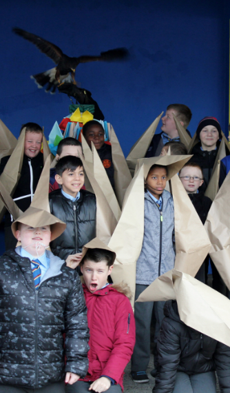 I felt this was a very successful project in terms of engagement and pitching to primary level students. Sessions in the school were active and fun with all children participating enthusiastically. Maria brought the pupils on an incredible journey of inquiry and art-making which culminated in meeting the Harris hawk, Kayla. As a result, pupils had the most imaginative and interesting questions for the hawk handler Barry and the experience no doubt left them with a new-found appreciation for the wildlife that is in their local urban environment.