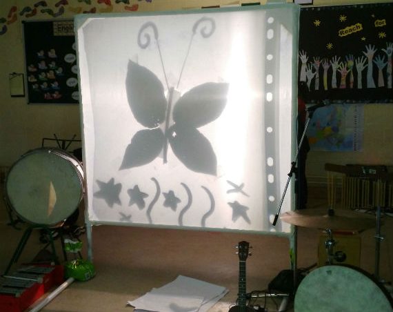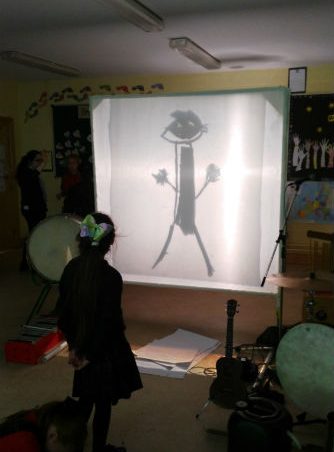 Then began a separation of the group into two halves. One half facilitated by Annie and the shadow puppetry and the other half by Robbie and music creation as a means to underscore the students very own production.