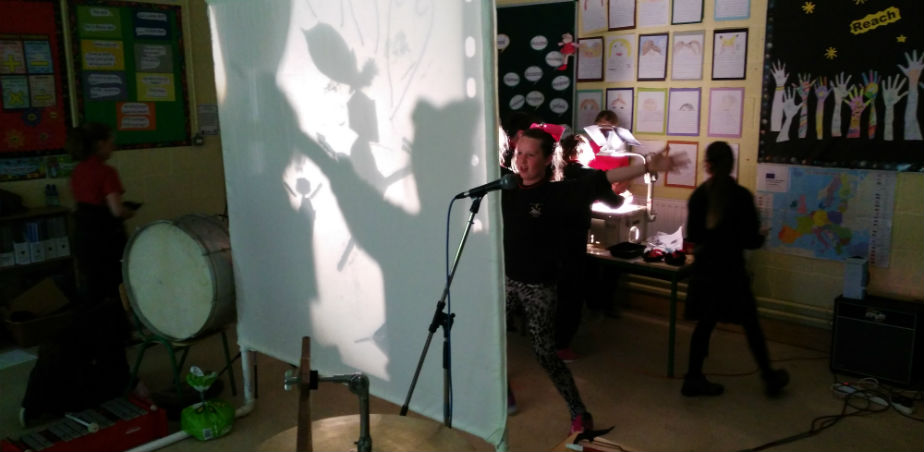 Sleeper Creeper was a collaborative creation between Robbie Perry (musician), Annie Callaghan (artist) and Philip Doherty (playwright) and was performed in Townhall Cavan at the end of 2016 as part of their seasonal programming for children. The success of the show duly inspired Joanne Brennan (Arts in Education CMETB) to approach Robbie and Annie and adapt Sleeper Creeper for a pilot project to run in two selected primary schools, one in Cavan and one in Monaghan. The original show was quite complex in its clever use of artistic disciplines. From live and improvised music being layered throughout, the use of loop machines to projected shadow puppetry involving unique, as well as, everyday objects. All of this was performed with no dialogue and told the story of an old and lonely inventor who miraculously creates a living being from parts that he finds amongst junk. Their friendship grows from their collaborative performances and zany situations they find themselves in.